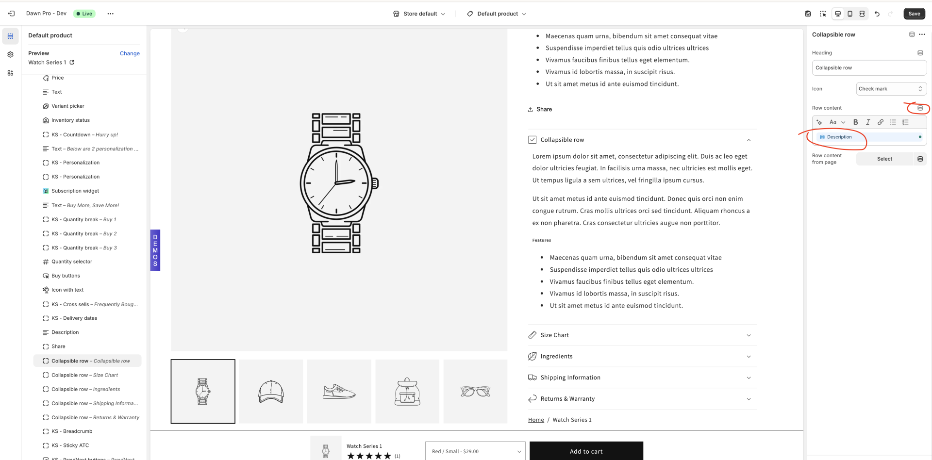 BHBoutique Is there a way to make the product description collapsible in the Dawn Pro theme? All I see on the product description (in the editor) is: Description. No customizable settings available.