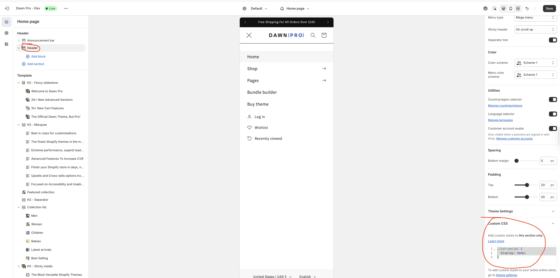 alvinkonda [Customer: @fredoversailles ] How to hide social icons from the mobile menu in the Dawn pro theme